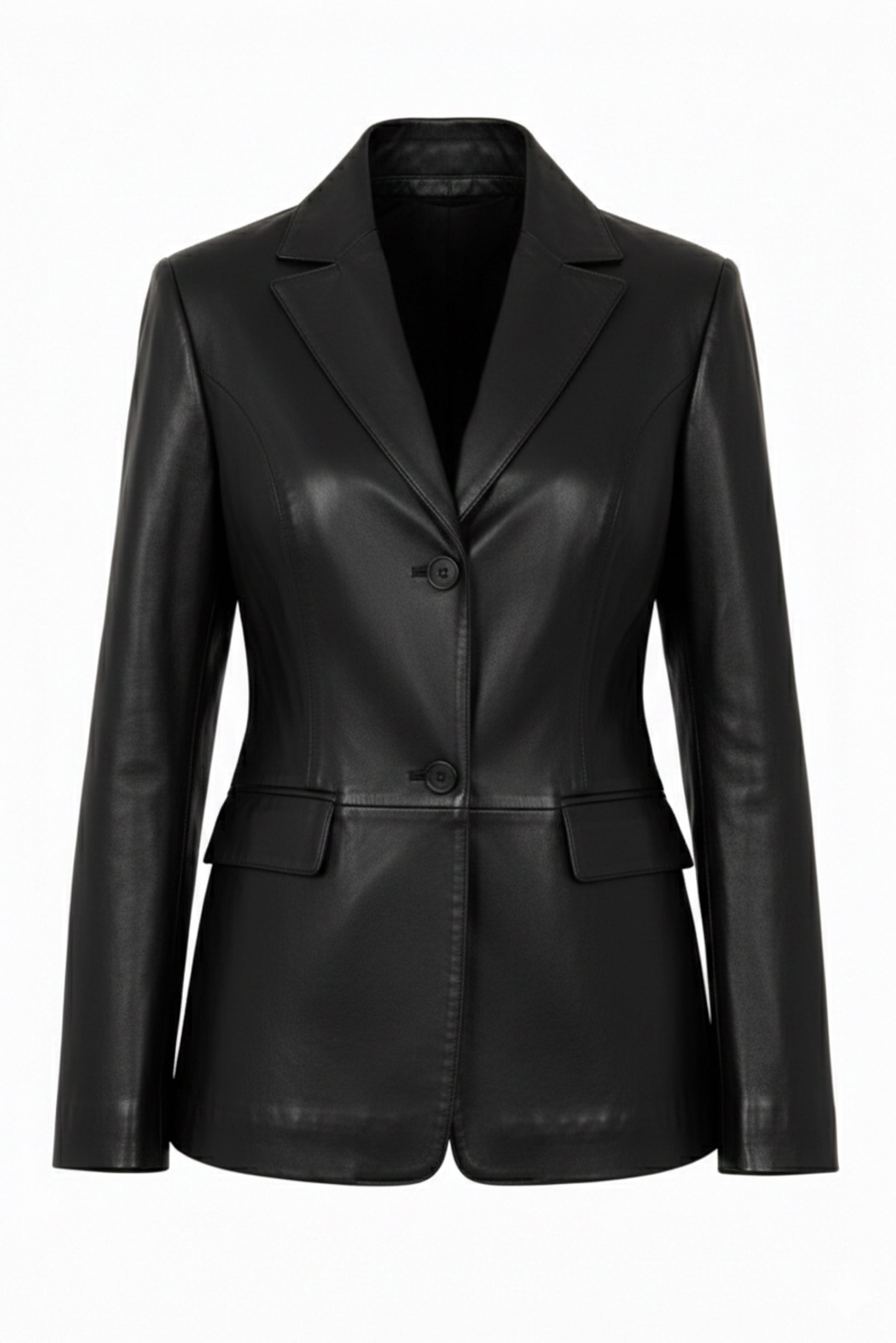 Women's Black Genuine Leather Blazer Jacket